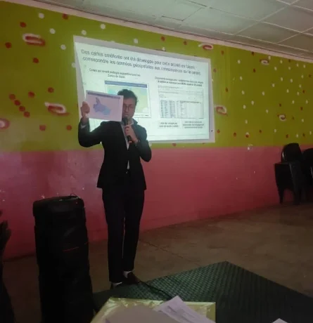 Mohamed Taktak, a Project Manager for Acasus in the DRC, coaching District Health Managers on using microplans to find high-priority communities for measles vaccination.
