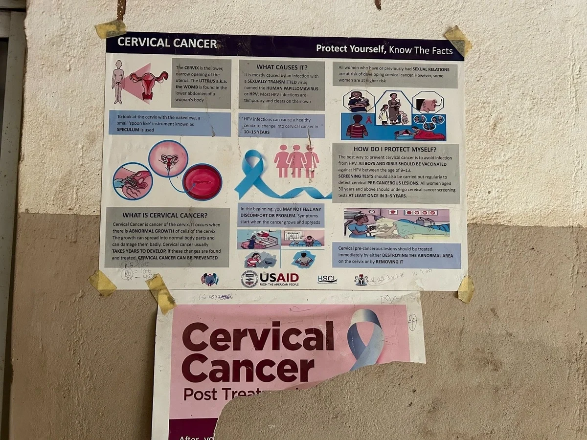 A poster conveying the benefits of taking HPV vaccines at a HIV clinic in Oyo State, Nigeria.